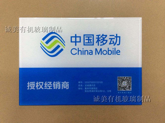 深圳寶安沙井誠美有機玻璃專業(yè)加工中國移動亞克力彩印牌 中國移動有機玻璃彩印牌 有機玻璃UV彩印標識牌等,還可按客戶要求訂制加工,歡迎惠顧。