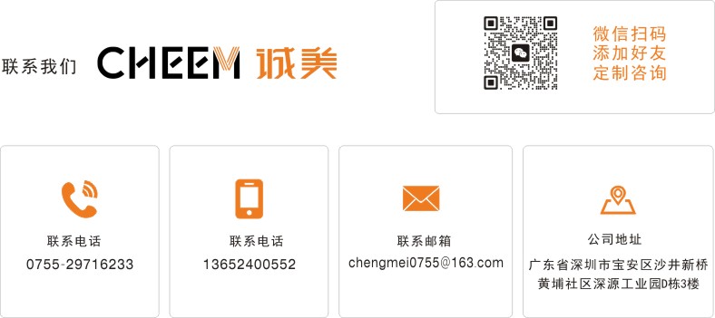 地址:深圳市寶安區沙井東環路黃埔深源工業園D棟3樓 電話:0755-29716233,13652400552,13316858219 傳真:0755-85271339 郵箱:chengmei0755@163.com