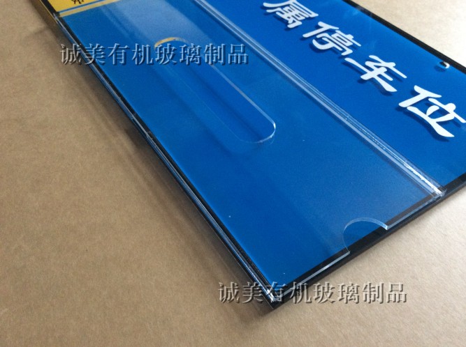 停車位指示牌顧名思義就是小區(qū)物業(yè)酒店會(huì)所等地方停車的提示標(biāo)識(shí)牌,具有標(biāo)記、警示的作用。寶安有機(jī)玻璃利用其材質(zhì),制作出精美可偱環(huán)利用的停車位有機(jī)玻璃標(biāo)牌。以下的客戶訂制的產(chǎn)品,可供大家參考下: