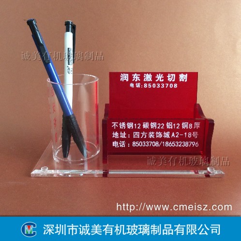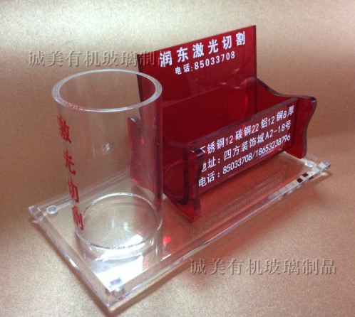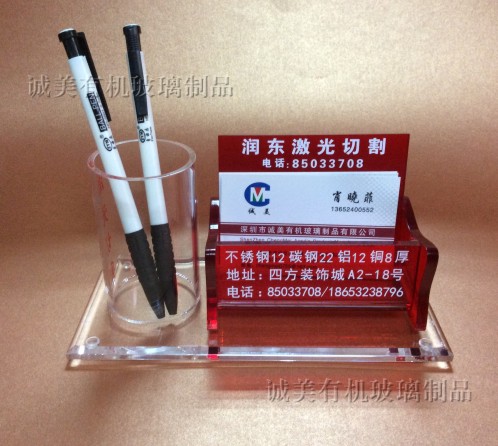 亞克力制作成名片盒,制作靈活易加工,可按客戶需要添加筆筒筆座,方便名片與寫字筆的擺放,起到收納作用。同時(shí)還可以印上公司名稱,提升公司形像。贈(zèng)送親友或合作客戶時(shí),也可起宣傳的作用,亞克力做出來(lái)的名片盒,高檔美觀,材質(zhì)晶瑩剔透,不失為做禮品的首選。
